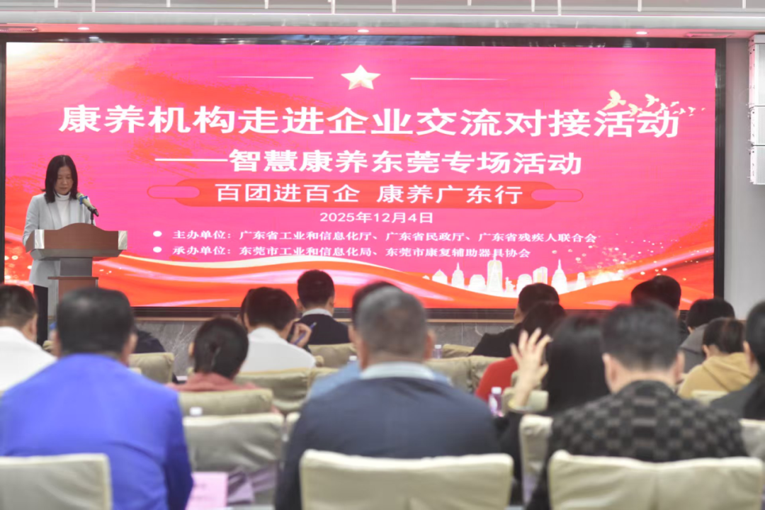 为深入贯彻党中央、国务院关于积极应对人口老龄化的战略部署以及完善残疾人保障和关爱服务体系的重要决策部署,促进康复辅具、老年用品企业和康养机构精准对接、协同发展,省工业和信息化厅、省民政厅、省残联联合主办的康养机构走进企业交流对接活动(“百团进百企康养广东行”系列活动)之智慧康养东莞专场活动,于12月4日在东莞成功举办。省工业和信息化厅、民政厅、省残联及东莞市相关部门负责同志,超50名养老康复机构代表参加了本次对接活动。